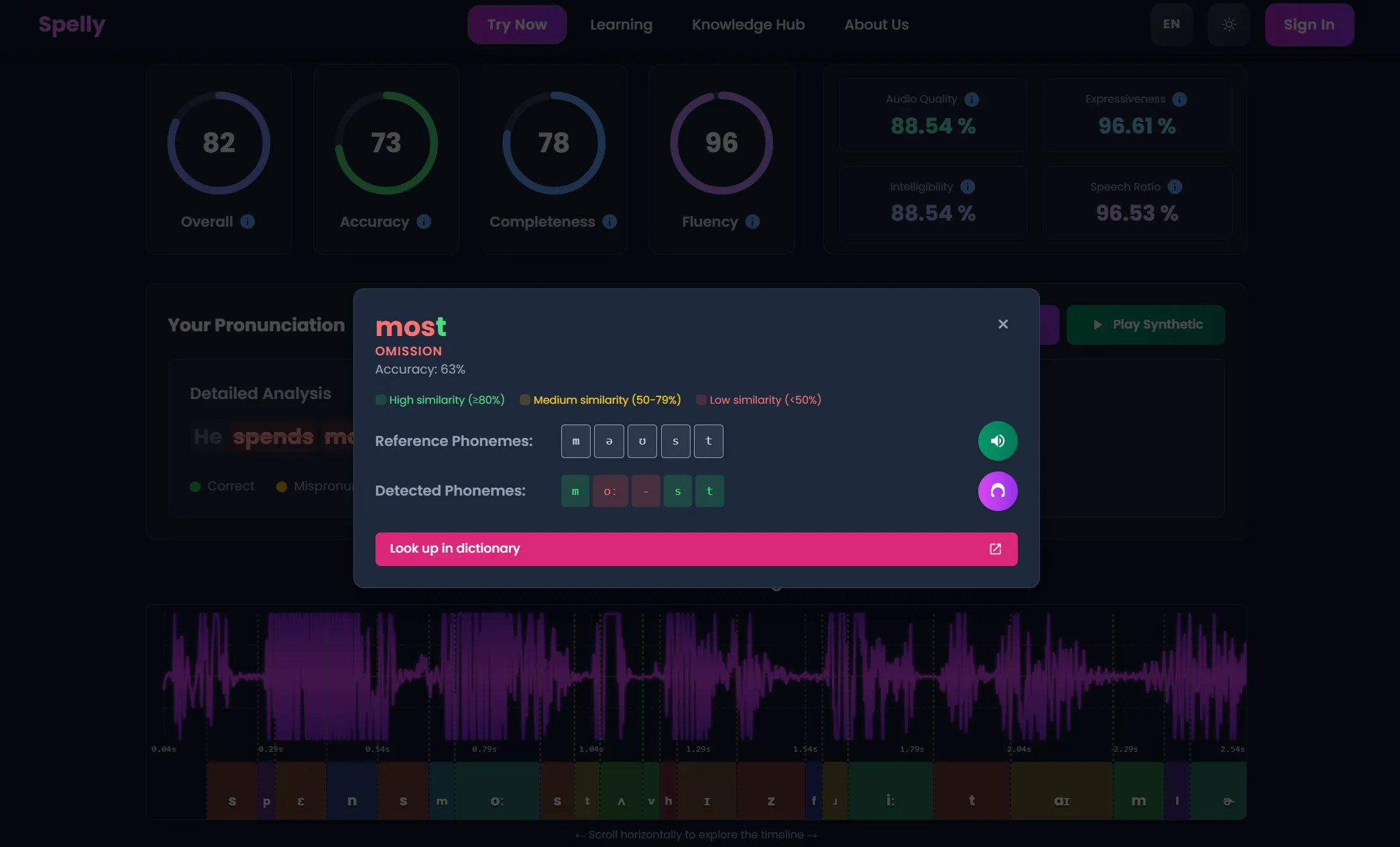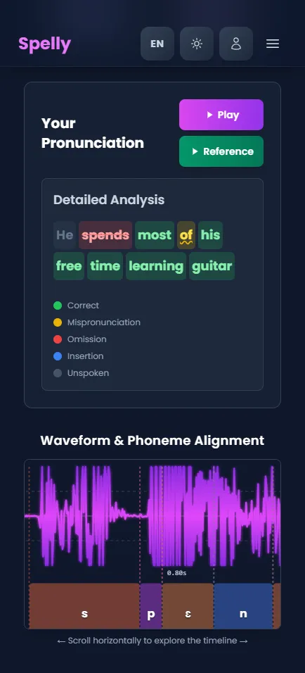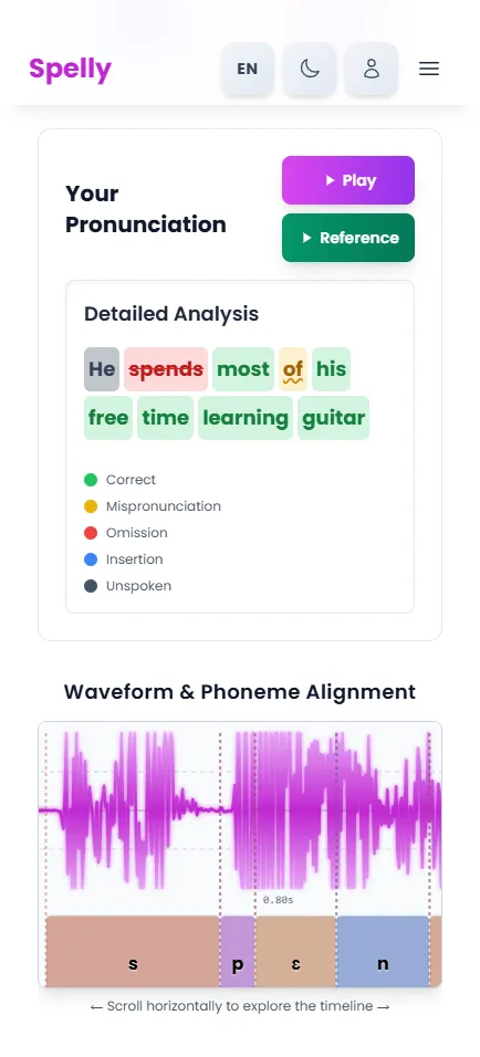 We then meticulously compare your pronunciation against ground-truth phonetic dictionaries and reference standards. This sophisticated analysis provides you with deep, actionable insights into your performance.