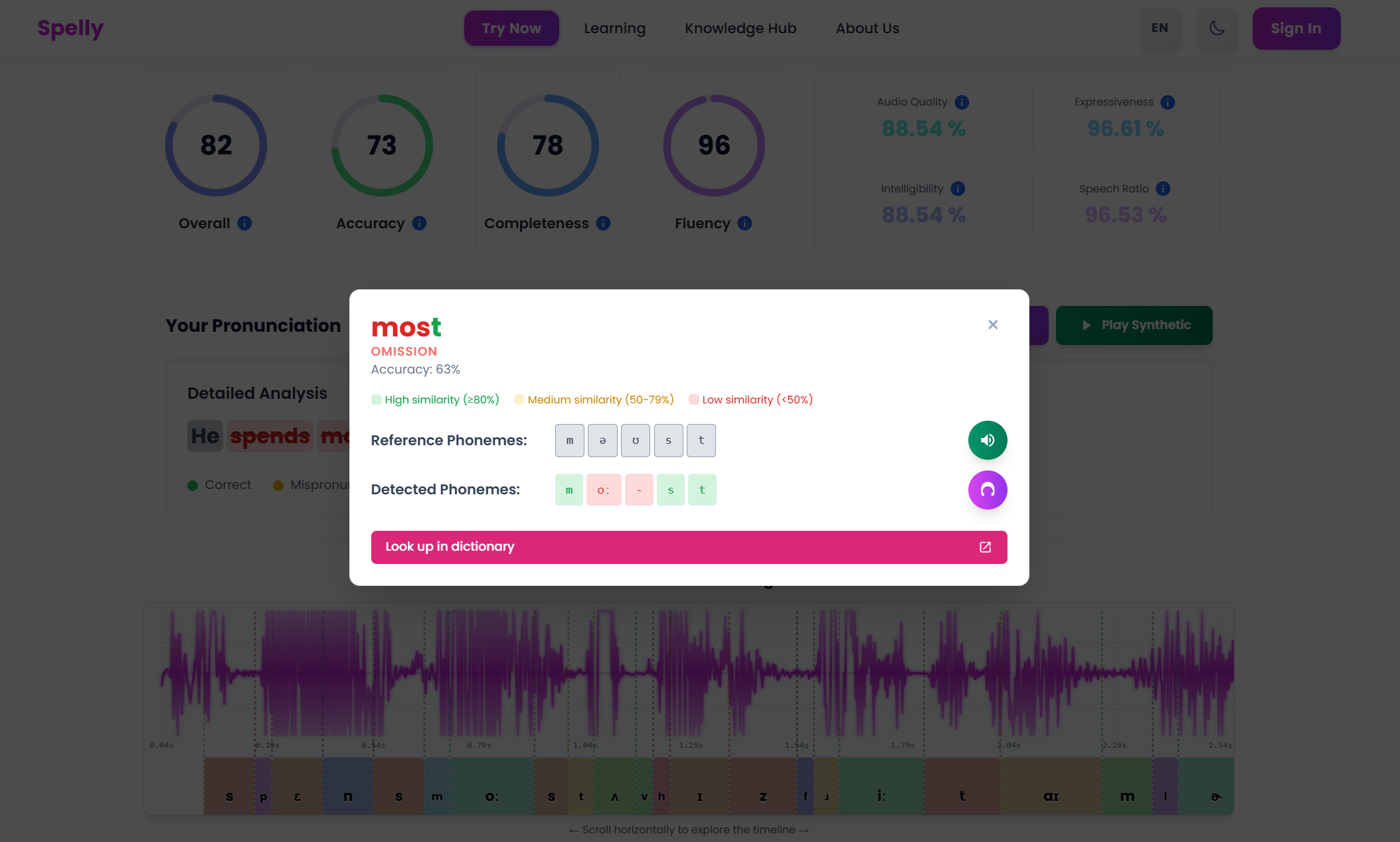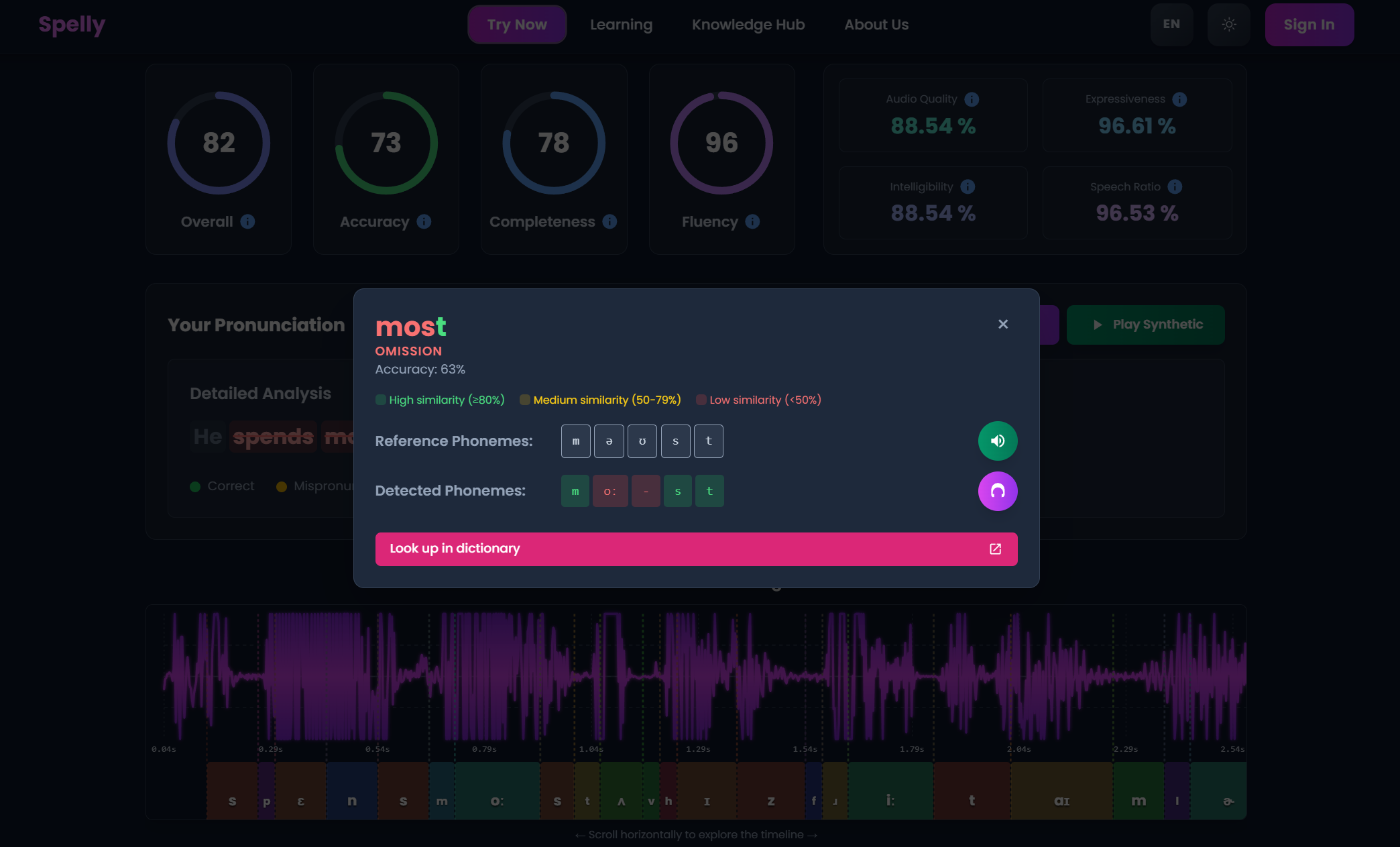 We then meticulously compare your pronunciation against ground-truth phonetic dictionaries and reference standards. This sophisticated analysis provides you with deep, actionable insights into your performance.