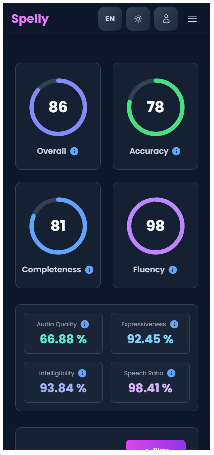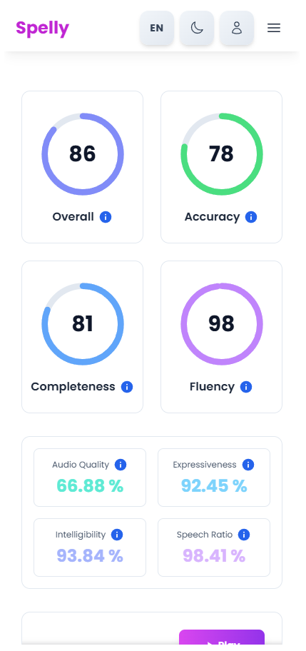 Finally, we synthesize all this data into comprehensive, intuitive, and crystal-clear metrics that empower you to understand your pronunciation journey at a glance.