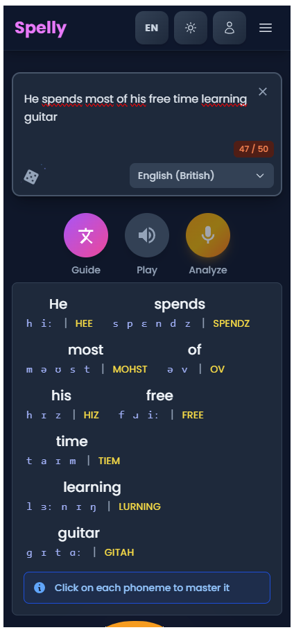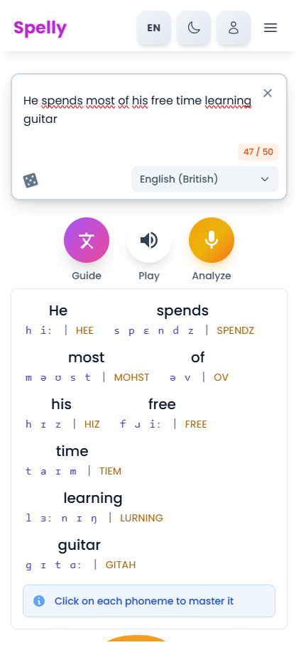 Get instant, detailed feedback on your pronunciation. Our AI analyzes your speech and helps you improve with precise, actionable insights.